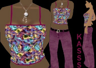 | Sails Away | Roses on Green and Blue Cotton slacks | Sun Kissed top and Raves |